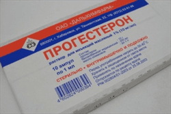 В 1 л масляного раствора для инъекций содержитсяся прогестерона 10 г. В ампуле 1 мл раствора. В упаковке 10 ампул.
