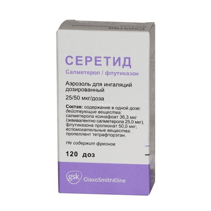 25мкг/50мкг 120доз аэрозоль д/ингаляций дозированный Глаксо Вэллком Продакшен
