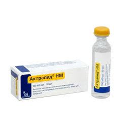Актрапид НМ раствор для инъекций, 1 мл содержит инсулин человеческий растворимый биосинтетический 40 или 100 ЕД, во флаконах по 10 мл. В упаковке 1 шт.