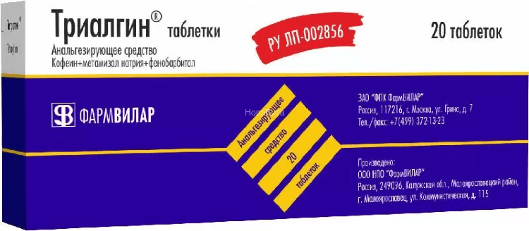 При приеме Триалгина® передозировка фенобарбиталом маловероятна: одна упаковка препарата (20 таблеток) содержит одну максимальную разовую дозу фенобарбитала.