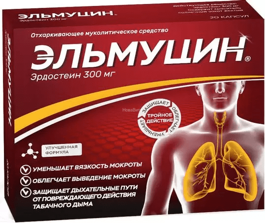 - действующее вещество: эрдостеин 300 мг;