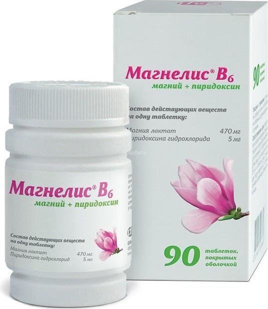 Состав: Магния лактат 470 мг (эквивалентно содержанию магния 48 мг) + пиридоксин 5мг