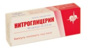 Нитроглицерин 1 % раствор в масле в капсулах (шарообразной формы, красного цвета), по 40 шт. в упаковке.
