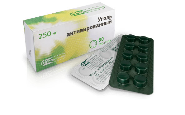 Таблетки, одна содержит: 0,25 г активированного угля. В упаковке 50 шт.