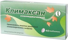 Климаксан гомеопатический - таблетки, одна содержит Цимицифуга рацемоза, Лахезис мутус, Лахезис, Апис меллифика, Апис, вспомогательные вещества. В упаковке 40 шт.