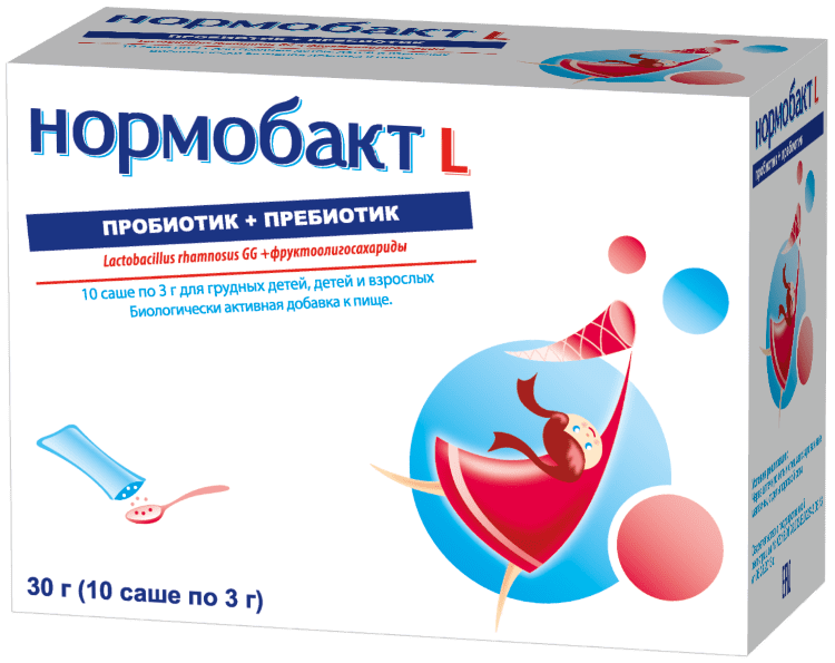 Нормобакт L – это сочетание пробиотиков (живые молочнокислые бактерии LactobacillusrhamnosusGG) и пребиотиков (фруктоолигосахариды), которое продлевает период жизни «полезных» бактерий и значительно увеличивает их количество в кишечнике; восстанавливает иммунную устойчивость организма