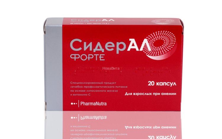 Сидерал Форте является специализированным продуктом лечебно-профилактического питания на основе комбинации липосомного железа и витамина С.