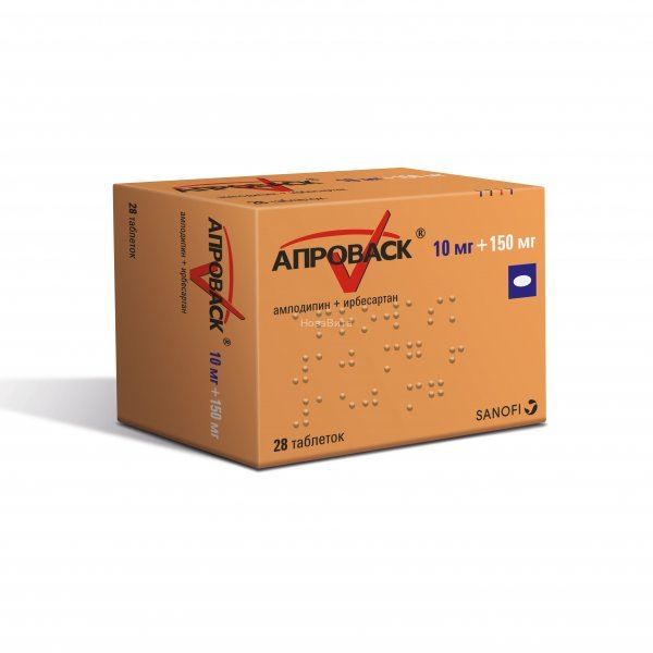 Фармакодинамические свойства каждого из активных веществ, входящих в состав препарата Апроваcк®, ирбесартана и амлодипина, способствуют их аддитивному антигипертензивному действию при применении в комбинации по сравнению таковым при применении каждого этих препаратов в отдельности. Как антагонисты рецепторов ангиотензина II (АРА II), так и блокаторы медленных кальциевых каналов, снижают АД за счет снижения периферического сопротивления сосудов, блокада поступления кальция в клетку и уменьшение обусловленного воздействием ангиотензина II сосудосуживающего действия являются дополняющими друг друга механизмами.