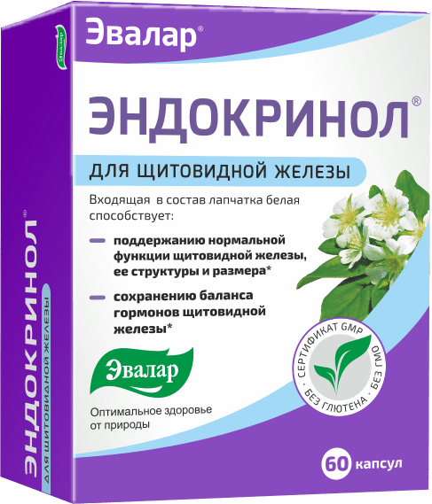 - Единственный комплекс для здоровья щитовидки, содержащий не только капсулы, но и крем с лапчаткой белой. Совместное использование капсул и крема «Эндокринол» позволяет активным веществам легко проникать в проблемную зону и действовать быстрее и эффективнее.